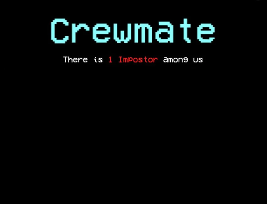 On October 28, 2018, the multiplayer party video game Among Us, inspired by the party game Mafia, was released.[1] A game round is preceded by a screen that announces that there is one or more impostor among the crewmates (shown below).